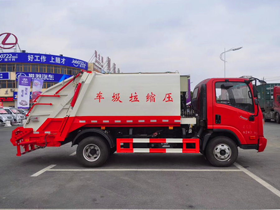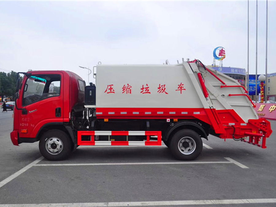 廂體材料為武鋼優(yōu)質(zhì)炭鋼,厚度為邊5mm,廂體容積為6立方米。由裝料機構(gòu)、壓縮機構(gòu)、卸料機構(gòu)、油泵、油箱、控制閥等組成的液壓機構(gòu)組成。裝料機構(gòu)由支架、連桿機構(gòu)、凸輪、掛鉤等組成,在油缸作用下,將垃圾桶內(nèi)的垃圾自動翻轉(zhuǎn)倒入料斗內(nèi)。新款有9支液壓扭制動,不帶副壓板,液壓控制操作系統(tǒng)為電動控制和手動控制。壓縮式垃圾車具有自動反復(fù)壓縮以及蠕動壓縮功能,壓縮比高、密封性好、裝載量大﹑操作方便、環(huán)保性好﹑整車利用功率高等優(yōu)點。作業(yè)自動化,垃圾收集方式簡便、高效